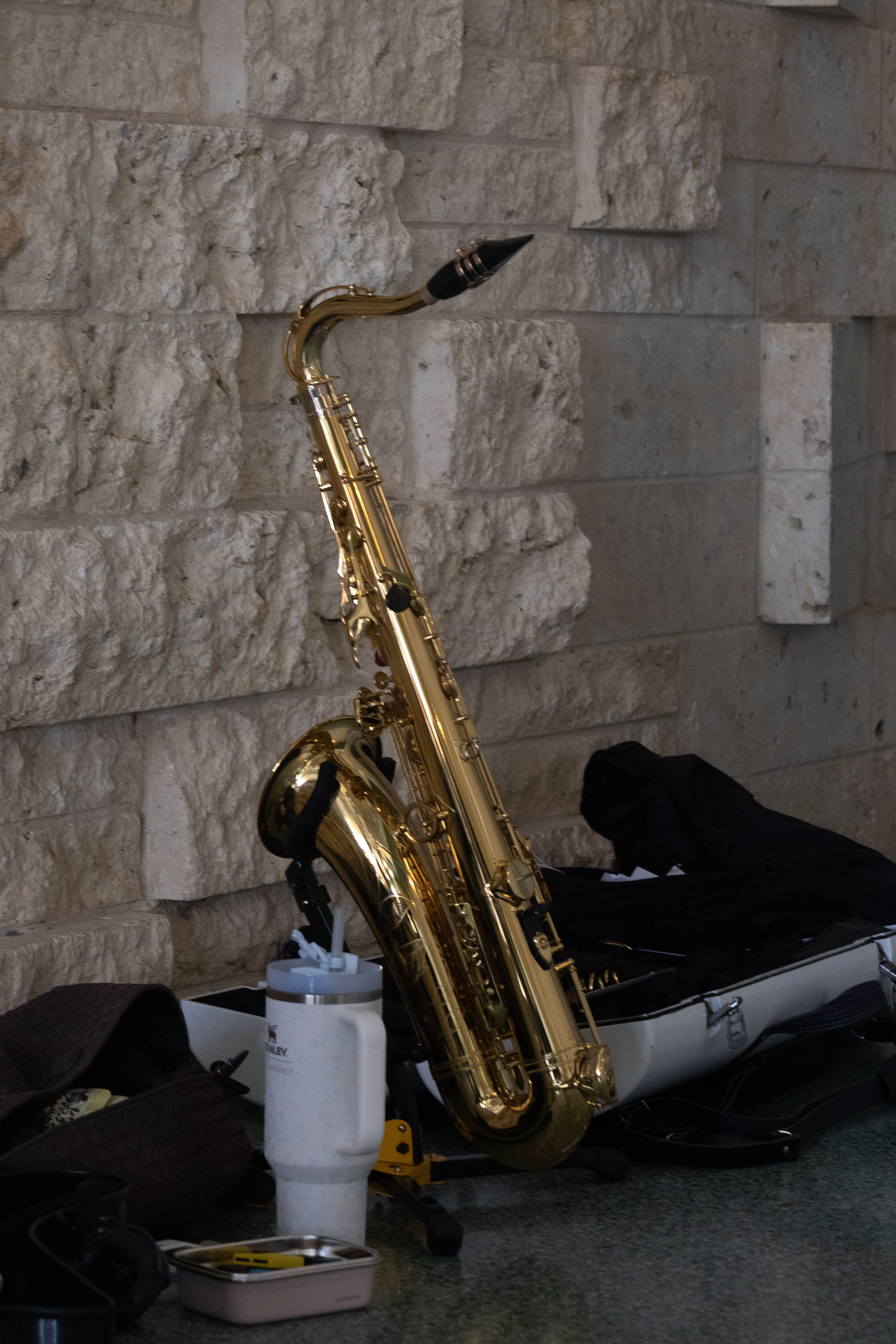 A lone tenor saxophone sits in the Murchison Performing Arts Center. Ashley Gomez